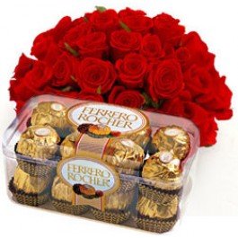 20 Red Roses and Ferrero Rocher 16 pcs box