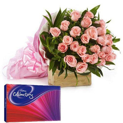 Symbolizing gentility, femininity, elegance and refinement, the pink rose also carries additional meanings depending on its hue. A deep pink conveys gratitude and appreciation, while pale shades connote grace and gentleness, admiration and happiness. With this Pretty pink add a zeal of sweet choco surprise,its like extra topping of love. Make a wonderful surprise with this sweet devoted combination to your better half to make her blush like these blushing Roses.