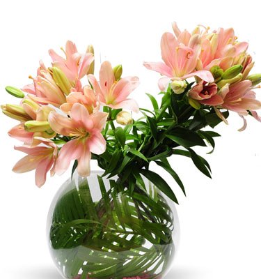 Expressing your thoughts should always be this stylish. Let our gorgeous arrangement hurl the right note, with its stunning fresh pink blooms, including lilies, hand-arranged by our florists inside a classic fish bowl vase. With style and technique, it will have them jolly no matter what the time it is. This plentiful bunch of lilies, will add lively color to any space. This pink colored spray contains 10 stems of Lilies, each stem with multiple blooms placed inside a fish bowl to make it look even more prettier. To let these gorgeous plants to last much longer, they are shipped fresh and all set to blossom. • 10 Stem Pink Lilies arranged in a Fish Bowl Glass Vase.