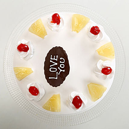 Try this extremely pleasing "LOVE YOU" Pineapple Cake topped with fresh, juicy pieces of sweet pineapple made with a smooth, creamy layer. This finger-licking cake has been made more delicious and luscious with a strong love of chocolate on the top and shiny red cherries.